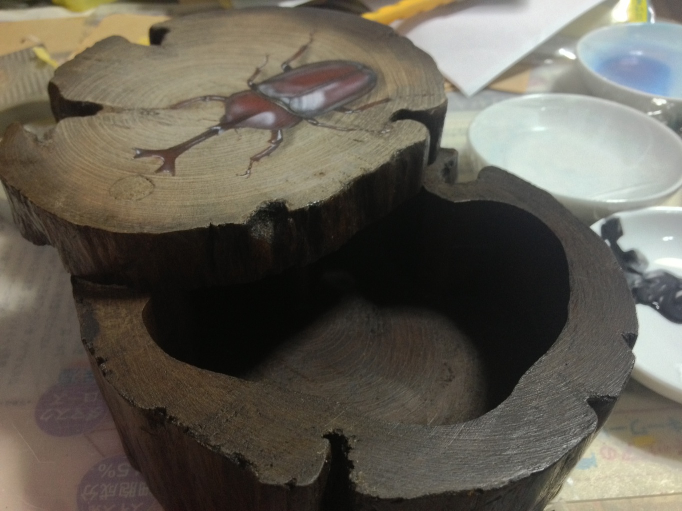 )が無かったので、たまたま行ったオシャレ雑貨店で買った小物入れに描いています。なので他のビートルシリーズに比べてデカいです。