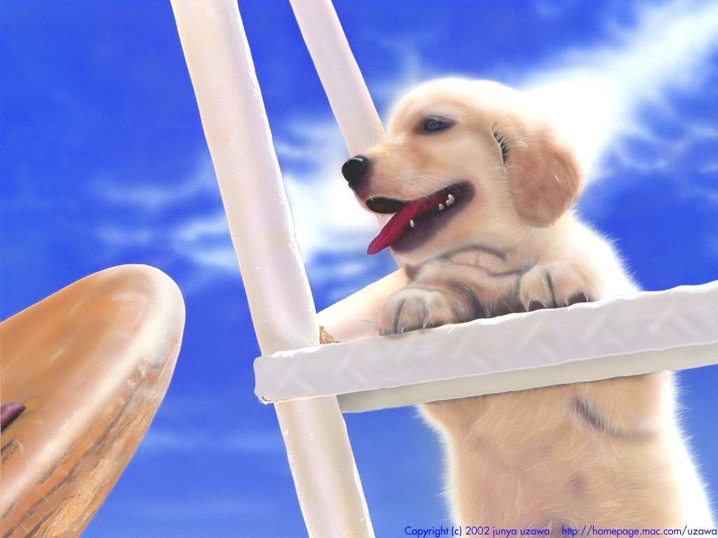 に続き、今回も『材質感』にこだわっています。このこいぬは口をあけているので、口の中を描くのがすごく大変だったのをおぼえています。なかなかいい色が出せなくって、だいぶ絵の具をムダにしました。あと、左端のサーフボード(みたいなモノ)の質感(特についた砂)を出すのに苦労しましたね。