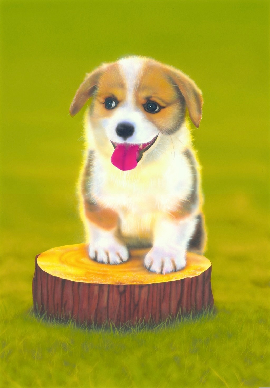 前前作にコ−ギ−を描いたばっかなんですが、またコーギーです。この作品は、『切り株』、『地面の草』、『コーギーの開いた口』と、描くのが難しい所がもりだくさんなので大変でした。