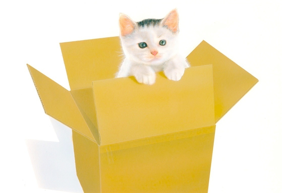 引っ越しといえば、ダンボールに荷物を入れますよね。その作業をしている時、近くにねこがいたら、どうなるか。ねこを飼っている方なら経験あると思いますが、たいていダンボール箱に入って行くでしょう。紙袋とかもよく入ったりしていました。そして、考えたあげくこういう絵になりました。