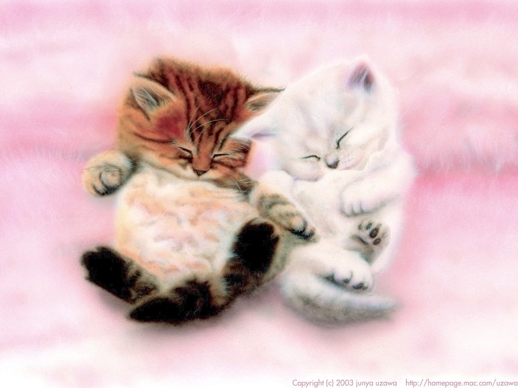 シンプルとはいえ、子猫を二匹描のは苦労しました。ネコの種類はチンチラのシルバーとゴールデンです。