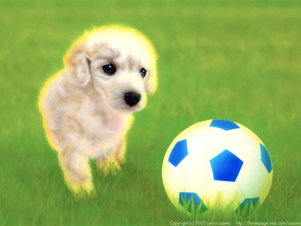 ただ、トイプードルを描くだけじゃつまらないので、おもちゃのボールで遊んでいるところを描いてみました。じつは、『e-greetingcard』、『テーマ:お誘い(スポーツ)』用も兼ねています。