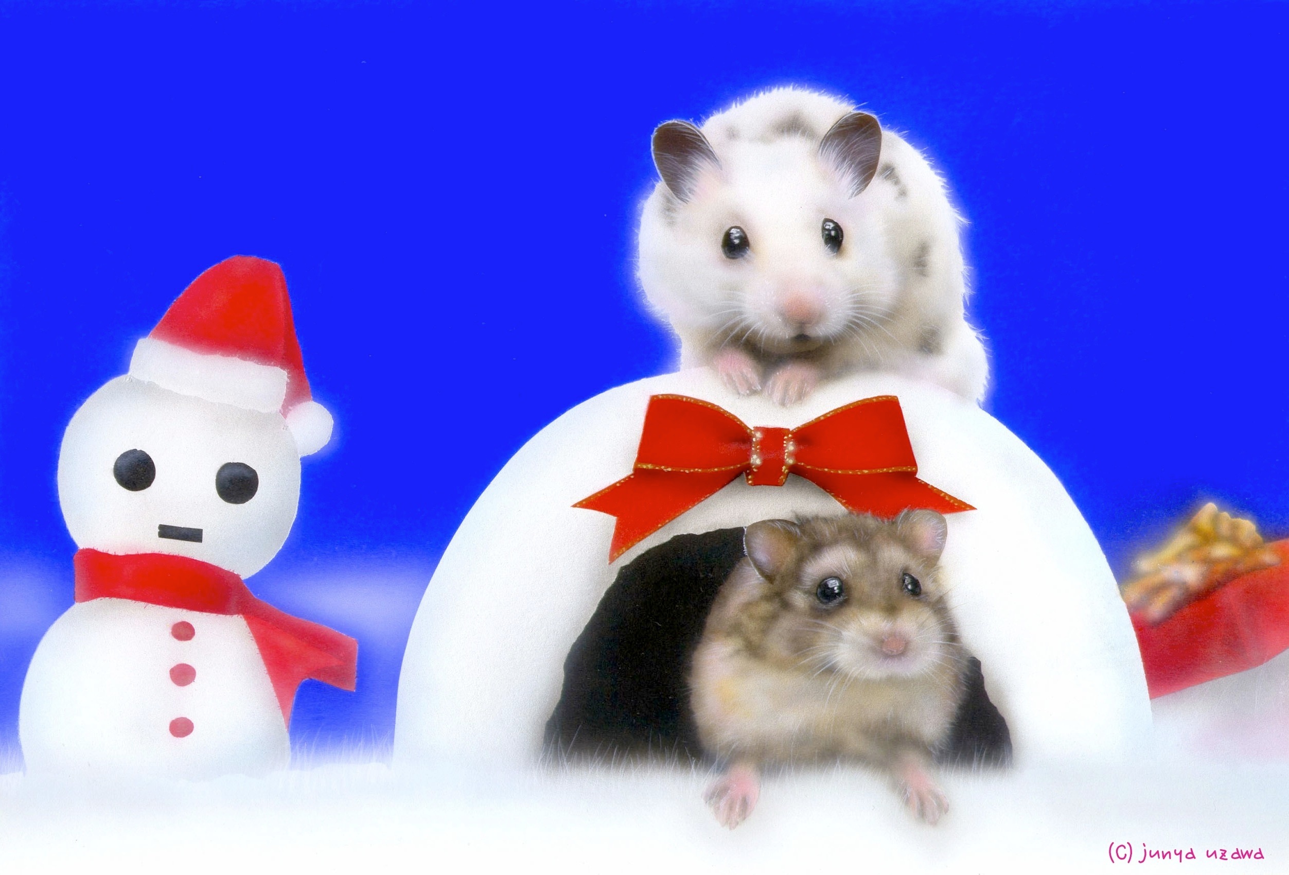 クリスマスと年賀状(ねずみ年)用に描いた絵です。