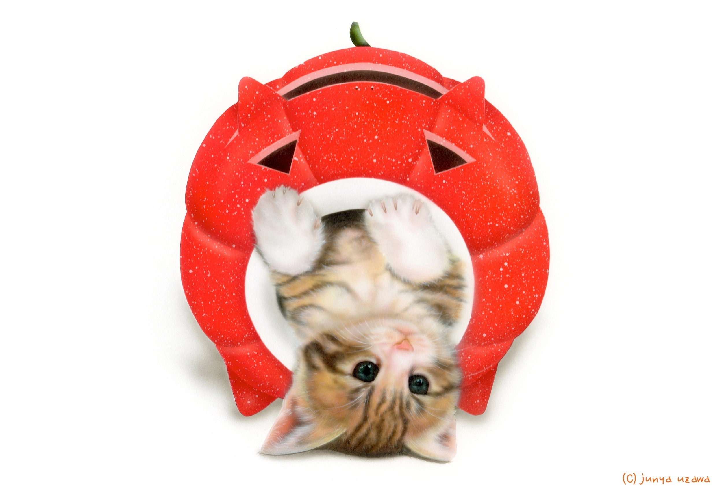 はじめてデザインフェスタに出展するということで、どうせならライブペイントをしたいと思って、それ用にデザインしたものです。そのため、簡単なものにしたかったので、今まで描いた絵の組み合わせになっています。この子猫は、以前描いた「SECRET