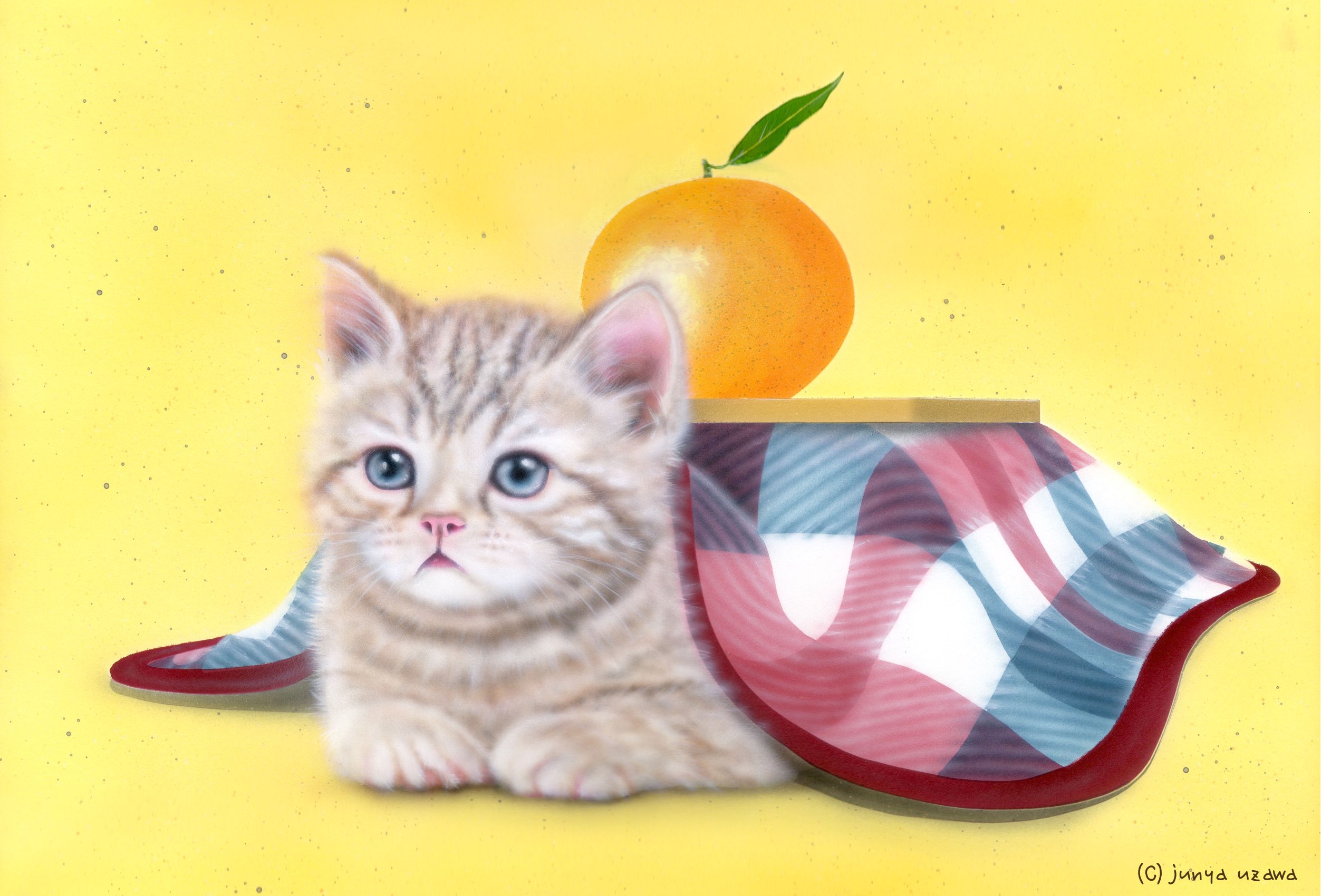 冬期最強の癒し系萌獣登場!冷えきった心も暖めてくれる。 2年前くらいに思いつき、温めていた(こたつだけに)作品です。今シーズンこそは描こうと思っていたのですが、なかなか時間が取れなくて寒い時期が終わるギリギリのこの時期になってしまいました。 じつは、この「ねこたつ」と「かとりにゃんこう:こいのぼり」の中のねこは同じねこ(アメリカンショートヘア)です。かけもちで活動してもらっています。